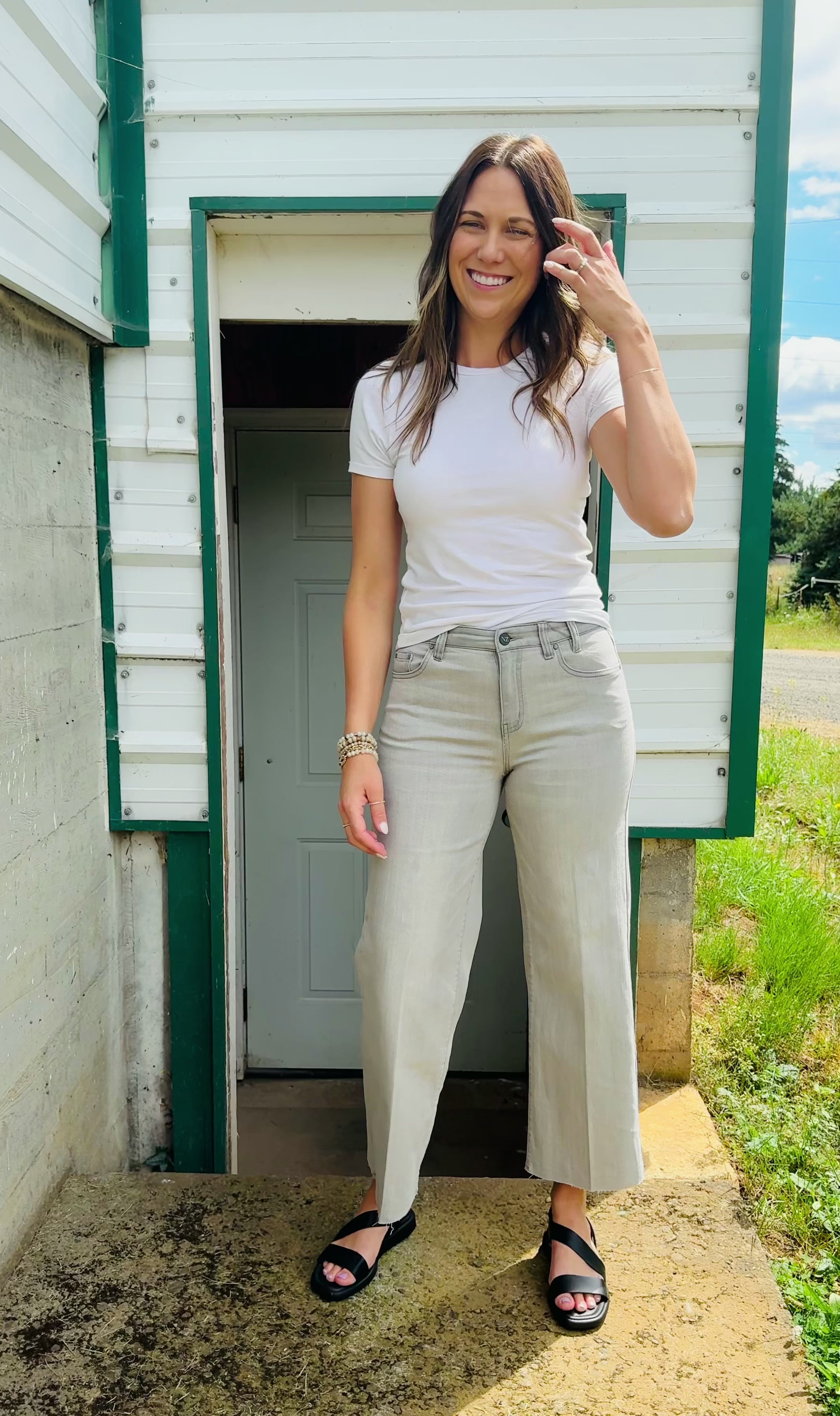 Whatever your weekend plans, they're that much more comfortable in the right denim. This 28-inch Wide Leg silo that's fitted through the hip before the wide leg opening at the ankle. The hem sits below the waist and it features a fly front and five pocket design. Made from our buttery soft denim that feels broken in on day one, with a little bit of stretch added into the weave for strength, durability, and extra comfort.