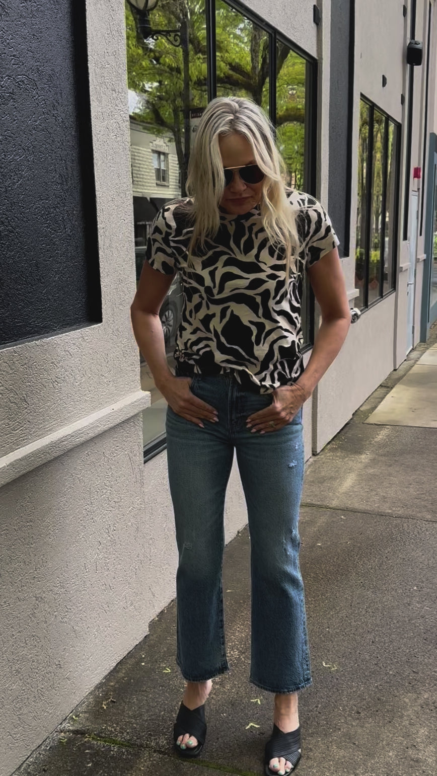 A bootcut designed to imitate your favorite pair of vintages. Crafted from our signature comfort stretch denim with a slightly wider leg, more relaxed fit, and super-high rise waist. Featuring a cropped, ankle length hem with a clean finish. Central Vintage is a lived-in, medium blue wash with fading, whiskering, and subtle hints of distressing throughout.