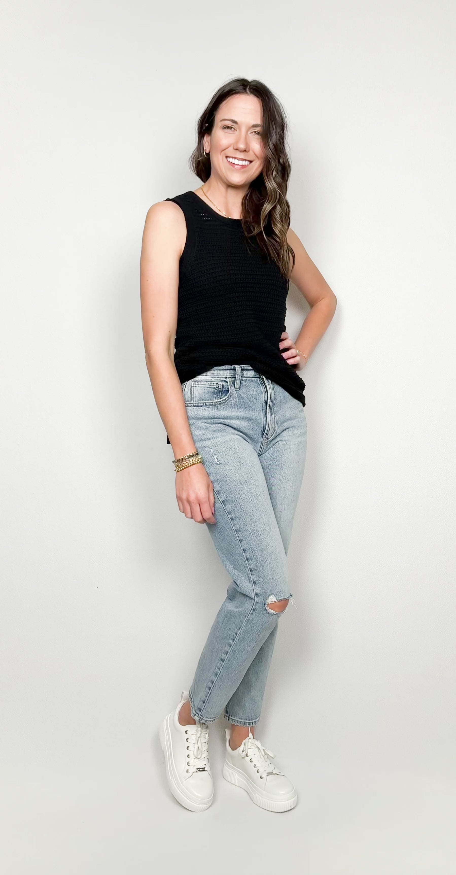 Introducing the Alora Sleeveless Tank, a must-have addition to your wardrobe. Crafted with lightweight, breathable fabric and elegant mesh crochet detailing, this top offers comfort and style in one. Perfect for any occasion, stay cool and chic all day long.