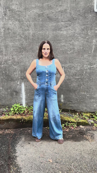 Bring effortless versatility to your wardrobe with this denim wide leg jumpsuit, featuring adjustable straps and classic utility pockets. Crafted from premium stretch denim for flexible comfort and modern movement, this piece makes a bold yet easy statement for everyday styling.