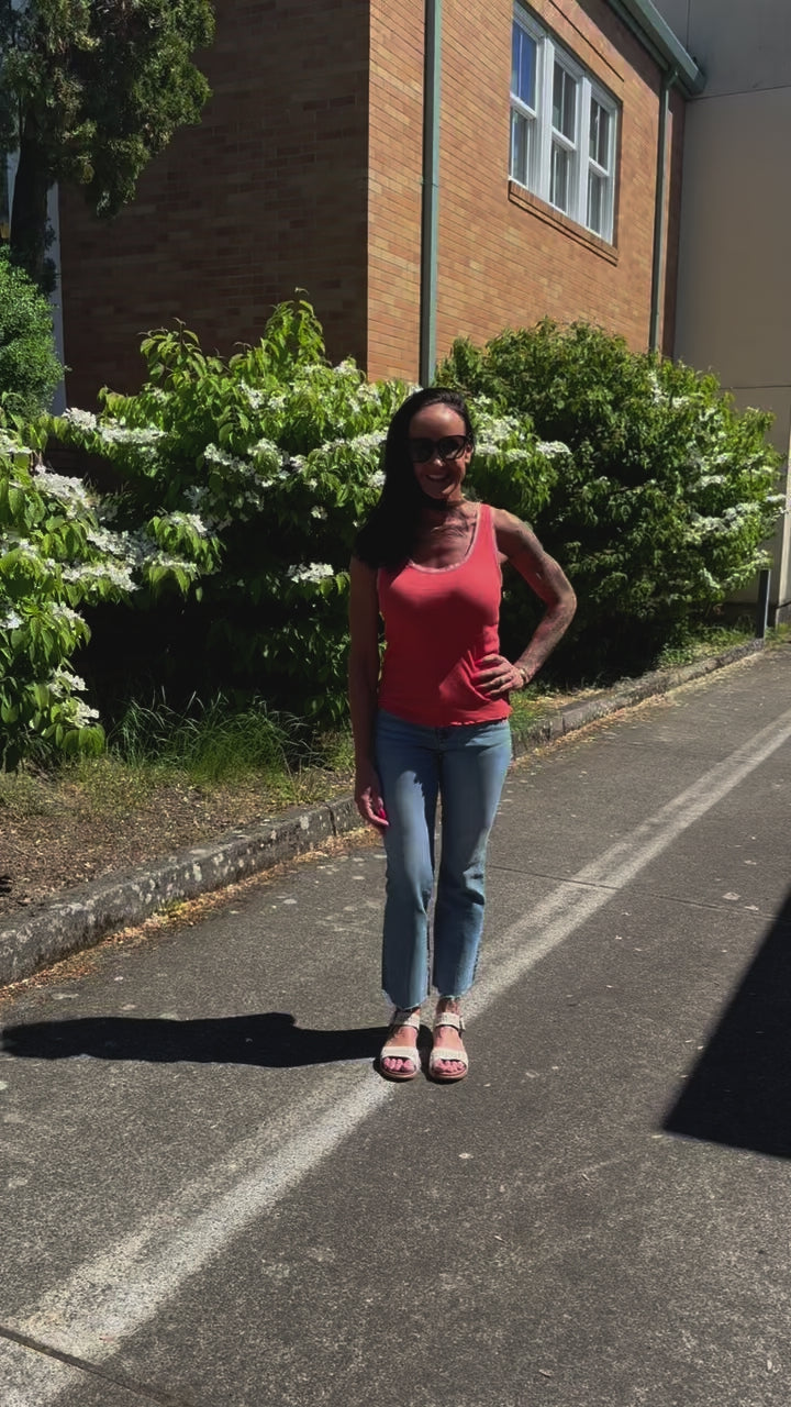 This feminine v-neck cardigan is ideal as a stand alone or paired with our Miley matching tank. With delicate lace trim and in our soft Supima rib fabric, this lightweight cardigan has a partial button closure and a sweet lettuce hem.