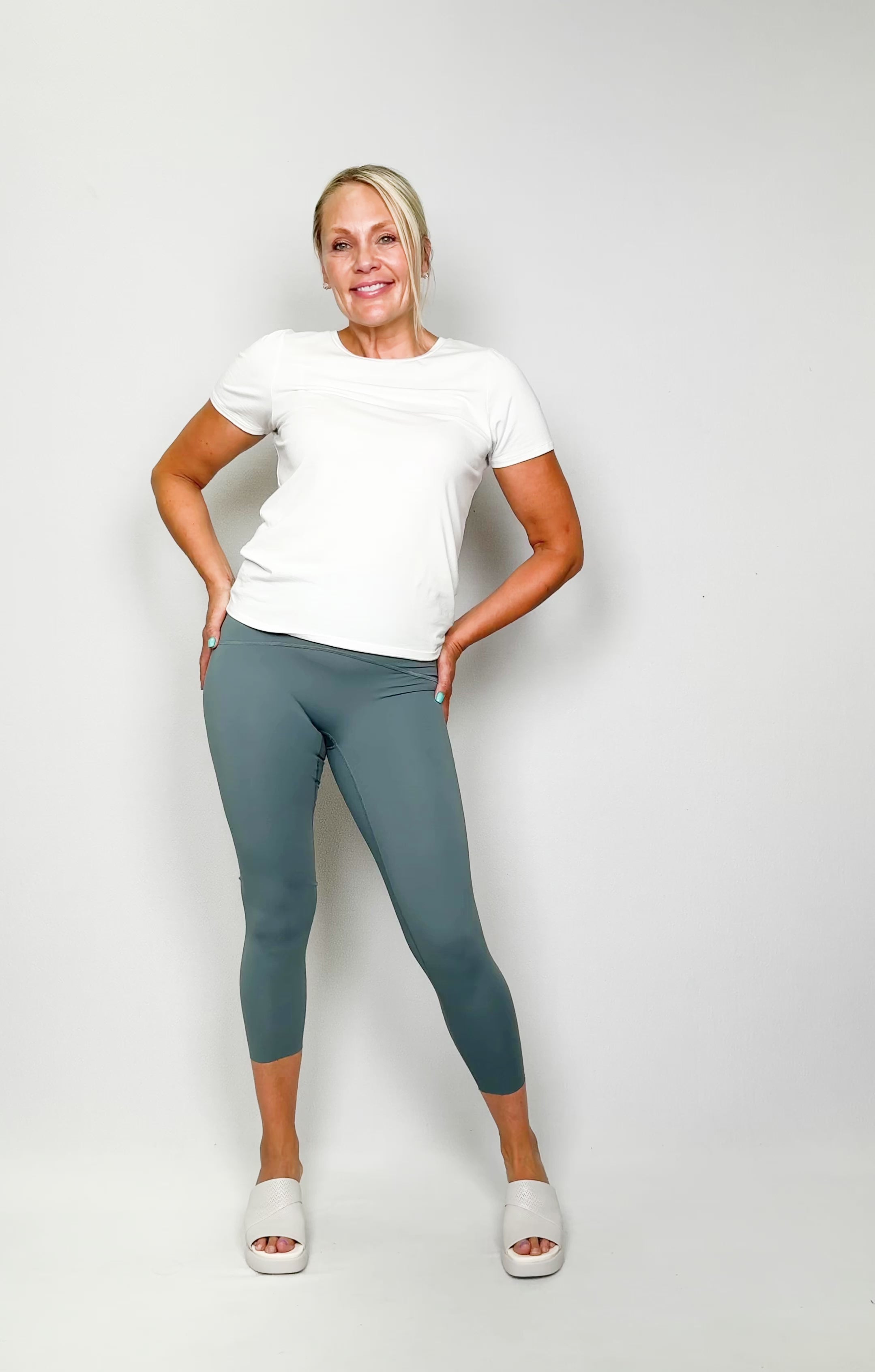 This legging hits the sweet-spot right between your calf and ankle. Engineered with body-hugging, breathable, and sweat-wicking fabric, these leggings support you during your sweatiest moments. The signature waistband has contoured seams that give the you the best butt ever, B.S. (Before Squats).