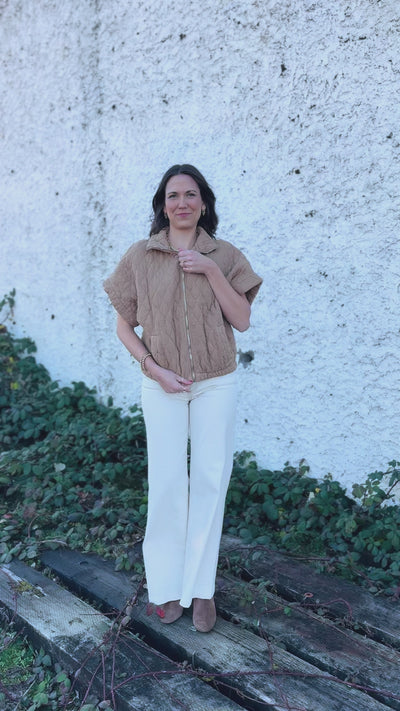 Indulge in luxurious elegance with our Charlston Quilted Bomber, featuring a stunning zip-up design and a beautiful cream color.