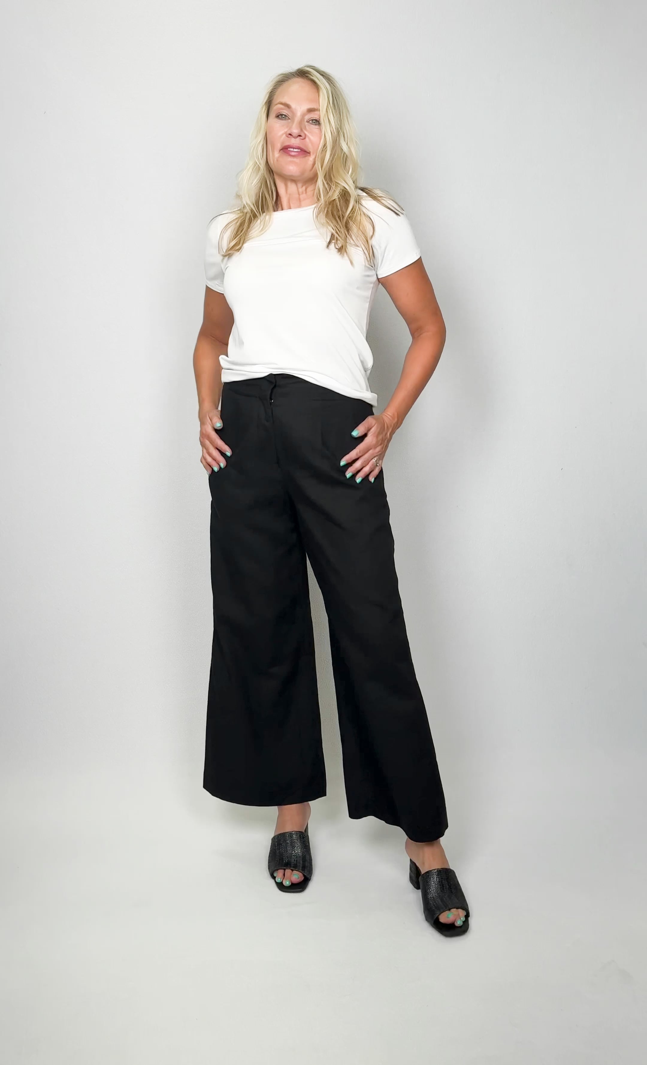 These pants are all about style and comfort with their wide leg fit and linen/viscose fabric. They feature a fly front opening, cut away pockets, and are full length. Get ready to rock a trendy and relaxed look with these fabulous pants. They're perfect for any occasion!