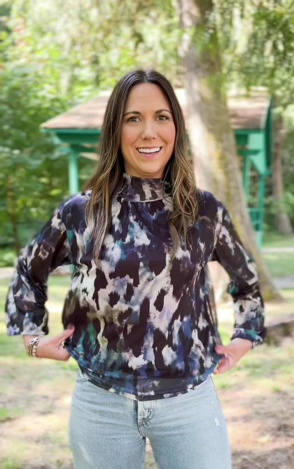 Add a touch of refinement to your casual style with this double-layer top featuring softly draped sleeves and a sheer finish.