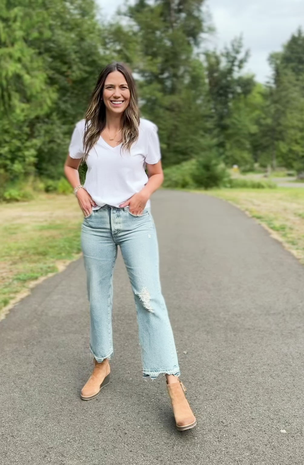 This denim is going to be a go-to style for Spring & Summer. Featuring a high rise, three-button fly & cropped flare- these will be perfect for all of your sandals!