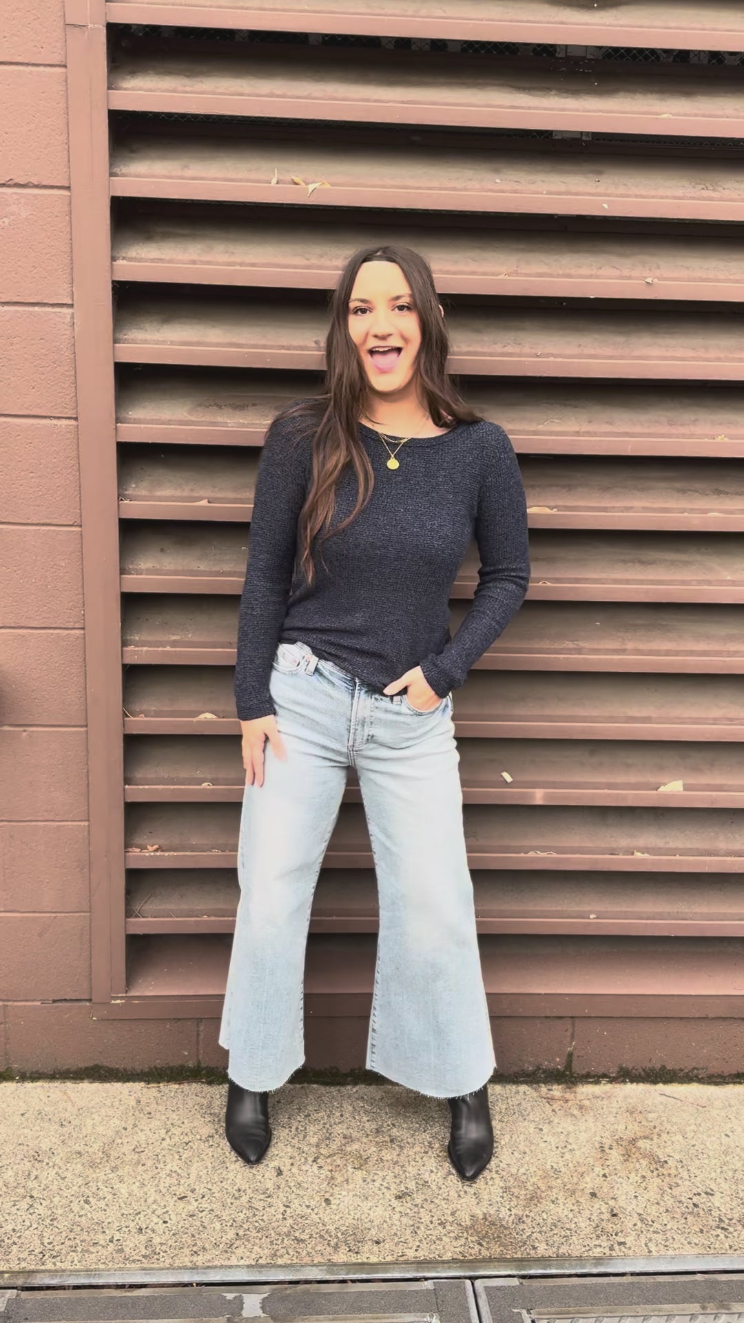 This versatile long-sleeve crew neck features a textured waffle knit construction that works equally well as a standalone piece or layered under heavier outerwear. The classic silhouette and navy colorway make it a reliable wardrobe essential for any season.