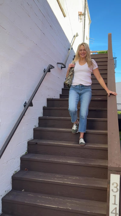 A closet staple. The Nikki Tee is made in LA with a V-Neck and short sleeves you'll be wearing it on repeat. Made from our bestselling 1x1 Cotton fabric that is a heavier weight cotton rib that washes well and keeps its shape.
