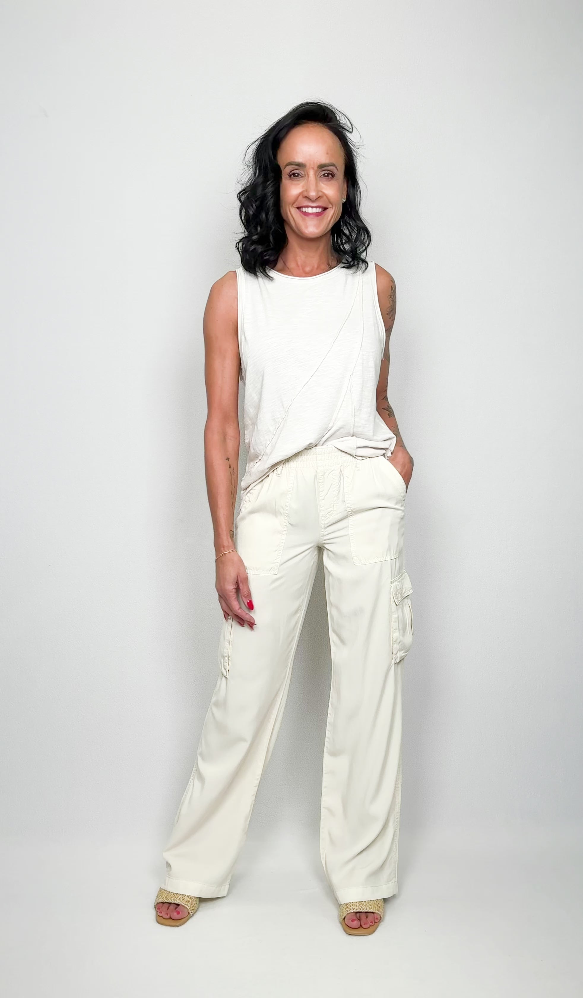 Introducing our new Relaxed Reissue Pant! Designed with a wide leg and elastic waistband, these pants offer both comfort and style. With 2 front and back pockets, as well as 2 side cargo pockets, you can easily carry all your essentials. Experience the perfect balance of functionality and fashion with our pull-on, relaxed fit design. Don't miss out on the ultimate pant for any occasion!