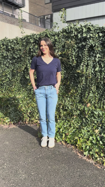 S/S Boxy V-Neck Tee-Vibrant Navy