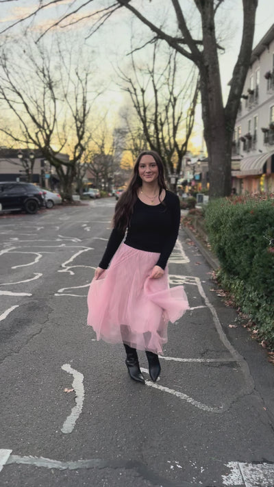 Solid Color Loose Elastic-Waist Mesh Skirt