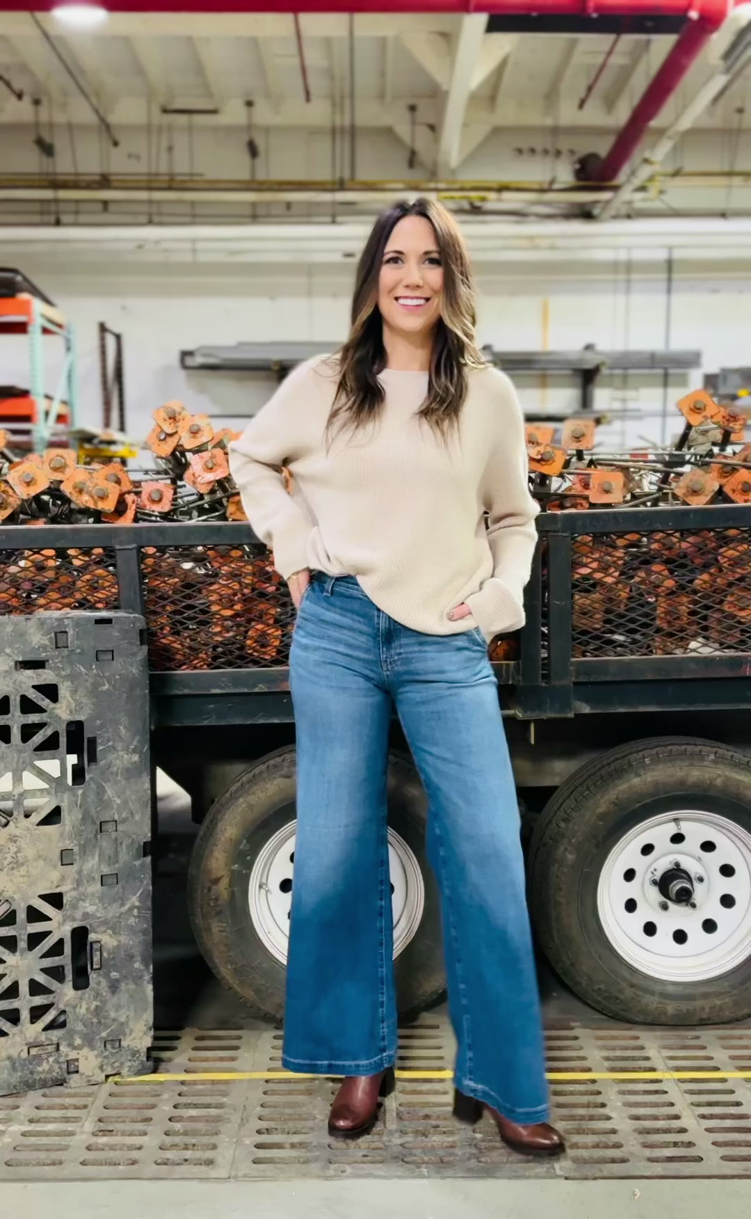 Stella is a low-slung denim palazzo pant in a light indigo wash with a faded finish. Designed to be worn lower on the waist, the style has classic five-pocket construction and a super-wide cut through the legs. These wide-leg pants are crafted from 10 oz. Day tripper Stretch Denim for a soft, comfortable feel and lightweight wear.