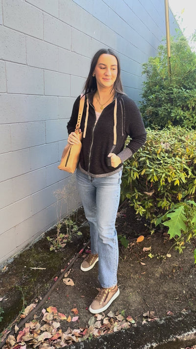 Upgrade your closet with the Zaket & Plover Two-Tone Zip Front Sweater, made from a cozy cotton blend that feels great all day. This long-sleeve cardigan features a sleek shape, highlighted by eye-catching contrast stitching and playful ties. Ideal for layering, it brings a fun twist to classic style while keeping things comfy and versatile.
