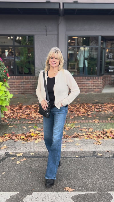 Crafted from premium 100% cashmere, this zip front cardigan delivers effortless sophistication for any occasion. The streamlined silhouette features a crew neckline and long sleeves, while the polished silver zipper adds refined detail. Layer it over your favorite pieces or wear solo—its versatile neutral palette complements virtually any wardrobe foundation with understated elegance.